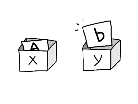 printf("%c %c", y, x); //출력되는 순서를 작성