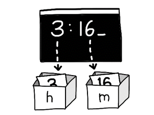 scanf("%d:%d", &h, &m); //콜론(:) 기호를 기준으로 두 수가 각 변수에 저장된다.