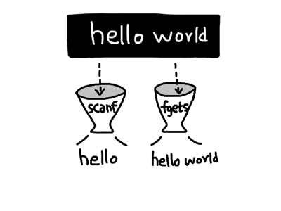 scanf("%s", ... ) 를 이용해 문장을 입력받으면, 첫 번째 단어까지만 저장된다.