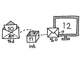 %o를 사용해 출력하면 8진수(octal)로 출력된다.