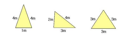 세 변의 길이가 모두 3m인 3가지 경우의 화단을 만들 수 있다.